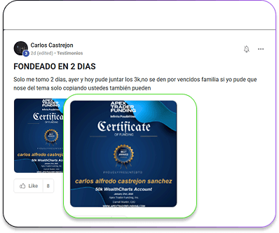 El camino más común es: Acceso a Profitfy (la membresía). Una prueba de fondeo (por ejemplo, una cuenta de 50K). Con esa estructura, ya tenés todo lo necesario para seguir la operativa completa y apuntar a resultados reales sin necesitar un gran capital propio.