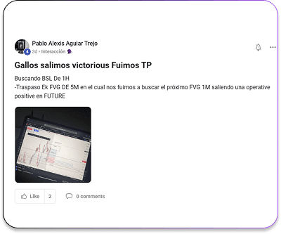 Todos los días (de lunes a viernes) podrás ingresar en vivo a ver mi sesión operativa, donde yo mismo estoy narrando, explicando y avisando de todas las operaciones que voy a tomar ese día.